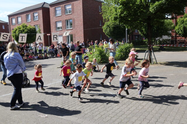 Sponsorenlauf, bei dem 44 Kinder im Alter von 1 bis 6 Jahren teilnahmen. Der Lauf,